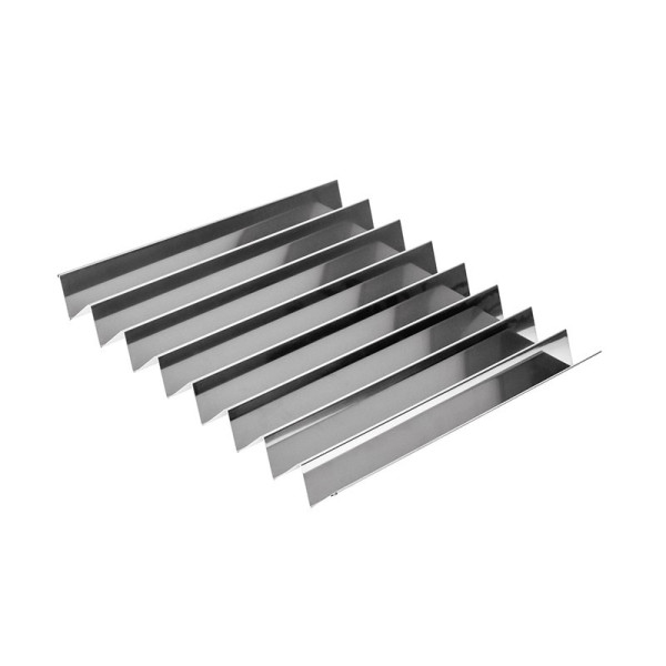 Rectangular cake pan with removable bottom in stainless steel, made in France by De Buyer.